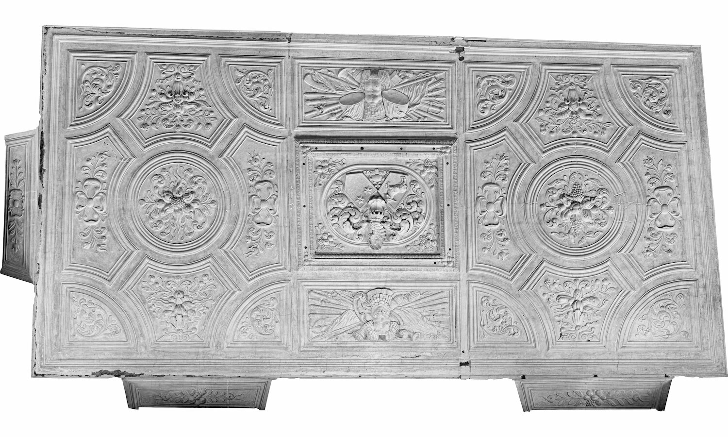 Barocke Balkenfelderdecke aus der 2. Hälfte des 17. Jh. Bestandesaufnahme, Schadensanalyse, Sanierungskonzept, Ausführen aller Arbeiten und Schlussdokumentation